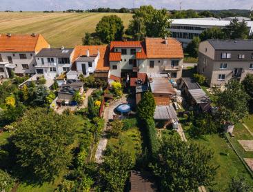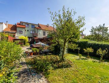 Mírně svažitý pozemek je orientovný na jihozápadní stranu. Parkování - dvě stání před domem. K dispozici samostatně stojící garáž umístěná ve spodní části zahrady, přístup po zpevněné komunikaci.