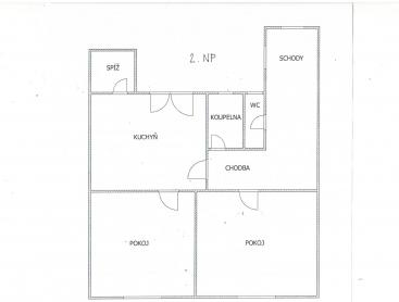 2. NP - 2+1, 66 m2. V obytných pokojích parkety, v kuchyni lino, okna plastová.