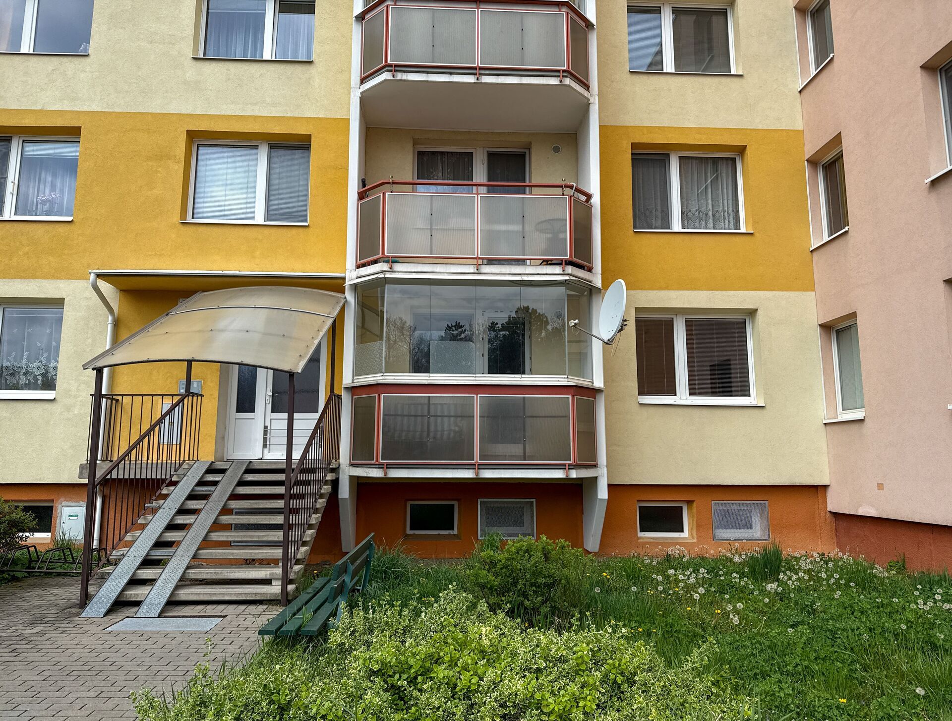 Zateplený, čtyřpodlažní panelový dům se nachází na sídlišti Edvarda Beneše.