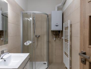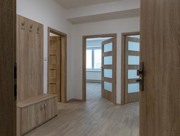 Nová plastová okna s trojskly jsou opatřena žaluziemi. Podlahu v celém bytě tvoří vinyl. Koupelna se sprchovým koutem a toaleta jsou samostatné místnosti. Vytápění je etážové plynové, bytová jednotka má vlastní plynový kotel.