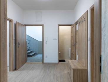 K bytu náleží sklepní prostor 13 m2 a jedno parkovací stání na uzavřeném dvoře s kamerovým systémem.