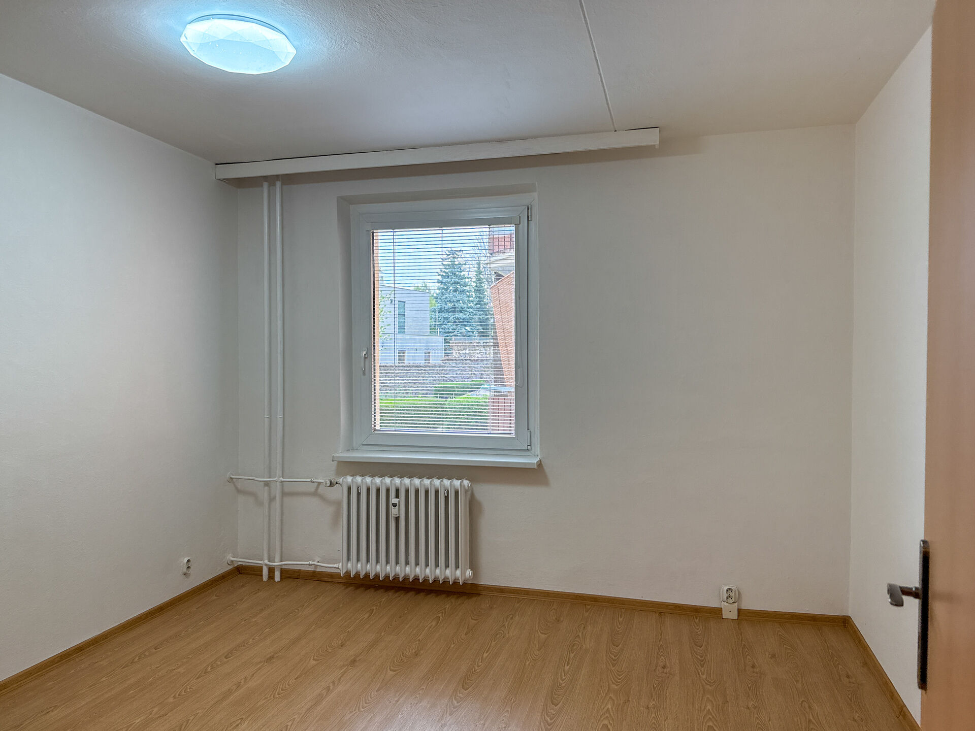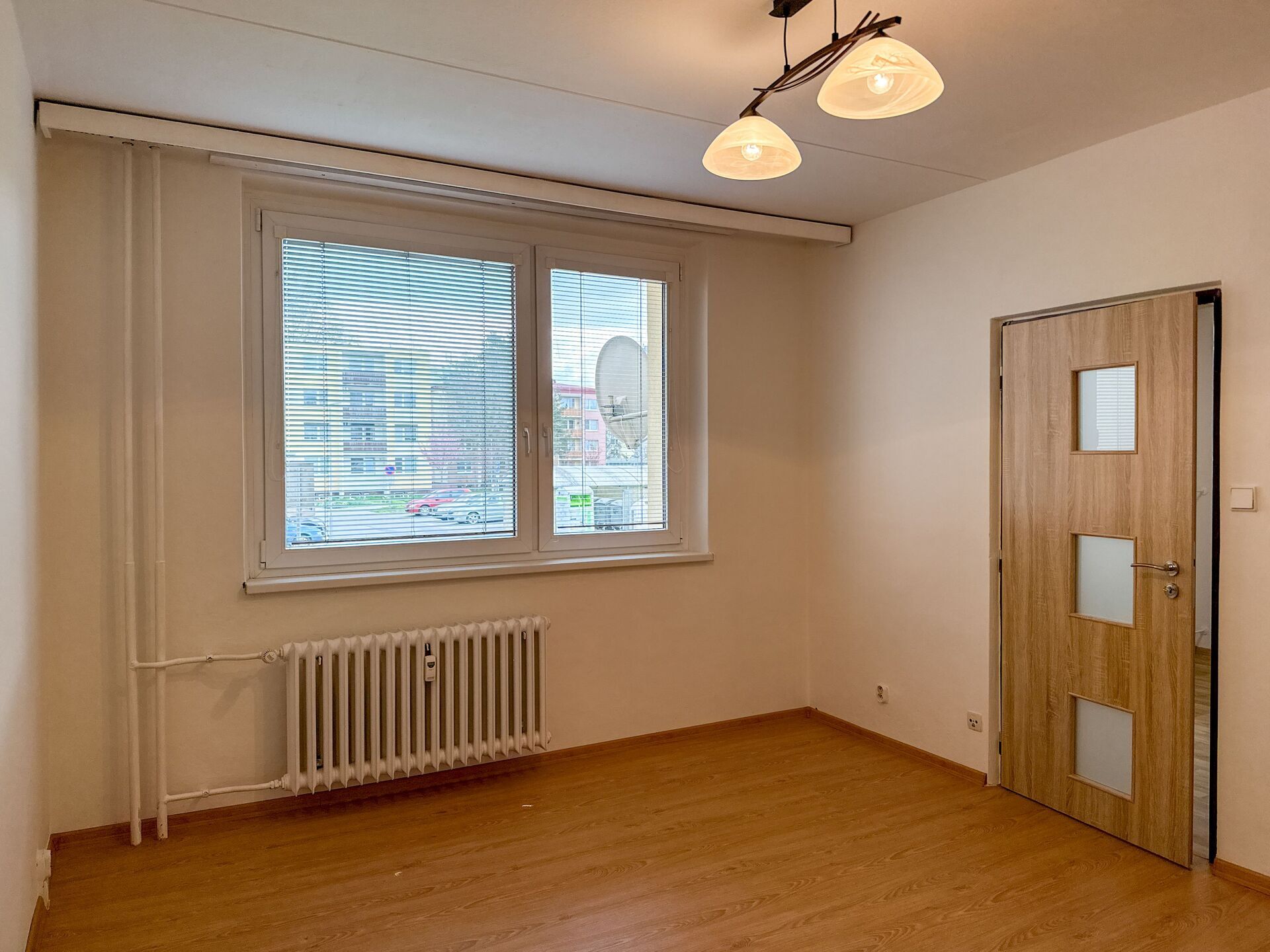 Plastová okna jou opatřena žaluziemi, podlahu tvoří vinyl.